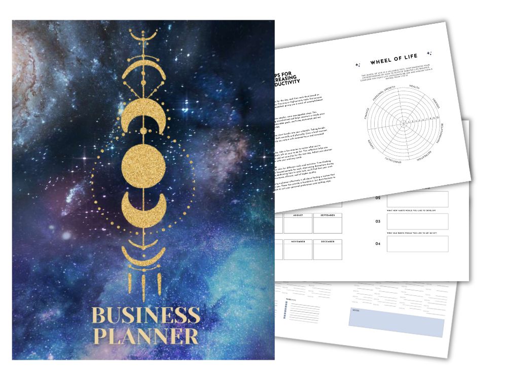 Stay organized and grow your business with this 273-page Printable Business Planner in a stylish Cosmic Blue design.